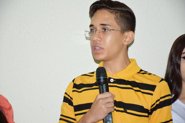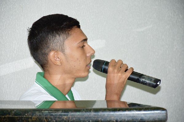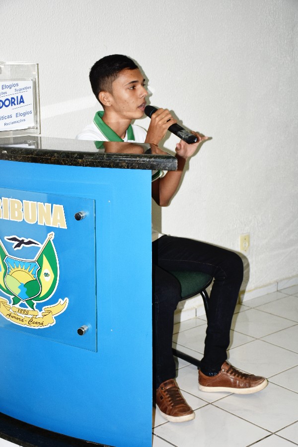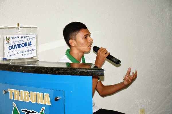O estudante Lucas França, que cursa o 3º ano do ensino médio na Escola Leopoldina Gonçalves Quezado, usou a tribuna para falar sobre uma pesquisa científica realizada desde o início do ano juntamente com seus colegas referente ao Rio Salgado. Lucas destaca que ao observarem a poluição presente no Rio, os estudantes perceberam a necessidade de uma intervenção no local.