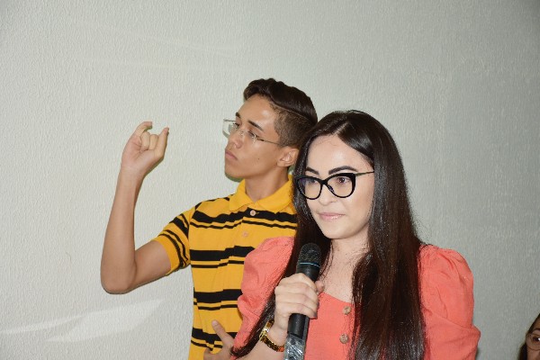 Também estiveram presentes para fazer o uso da tribuna a professora da Escola Tabelião José Pinto Quezado, Marta Kécia, e os estudantes Elias Ferreira e Helen Vitória. Através de um projeto de pesquisa, eles realizaram um levantamento da sociedade surda que existe no município de Aurora e detectaram que muitos alunos estão sendo excluídos. Marta destaca que o Decreto Nº 5.626 assegura que todos os alunos, com qualquer tipo de deficiência, devem ser incluídos na sociedade, por isso, a professora solicitou intérpretes de libras para esses alunos.