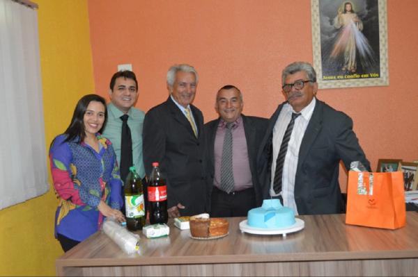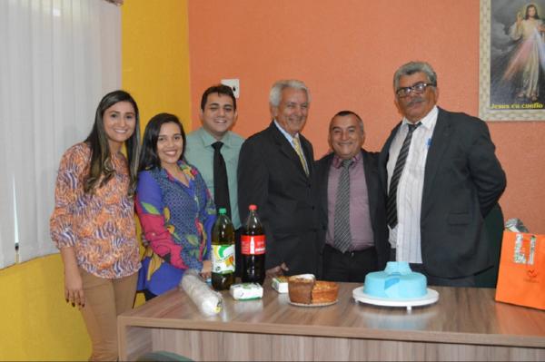 Após a sessão ordinária ao se dirigir ao seu gabinete, o presidente da Câmara, Aderlânio Macedo foi surpreendido com os cumprimentos dos colegas vereadores e funcionários da Casa, que organizaram uma comemoração surpresa para celebrar seu aniversário. O aniversariante agradeceu a todos pela iniciativa.